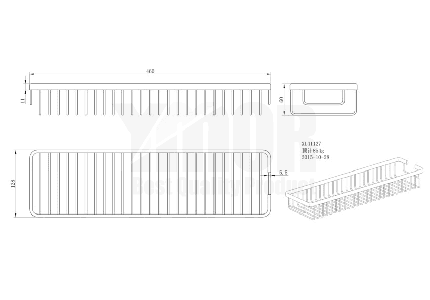מידות: גובה: 6 ס"מ, עומק: 8 ס"מ, ארוך: 36 ס"מ