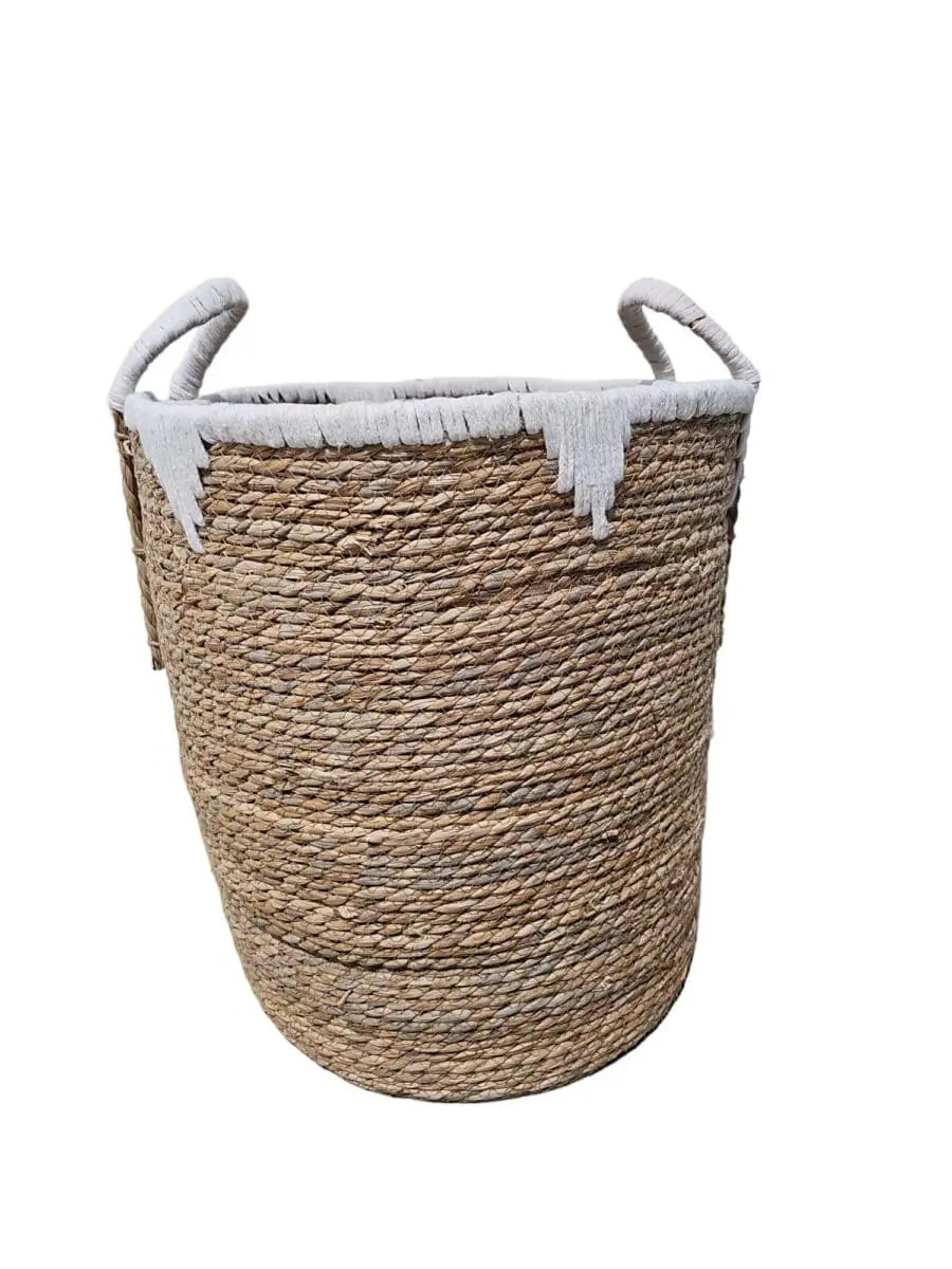 סל קש בינוני טבעי עם פס לבן